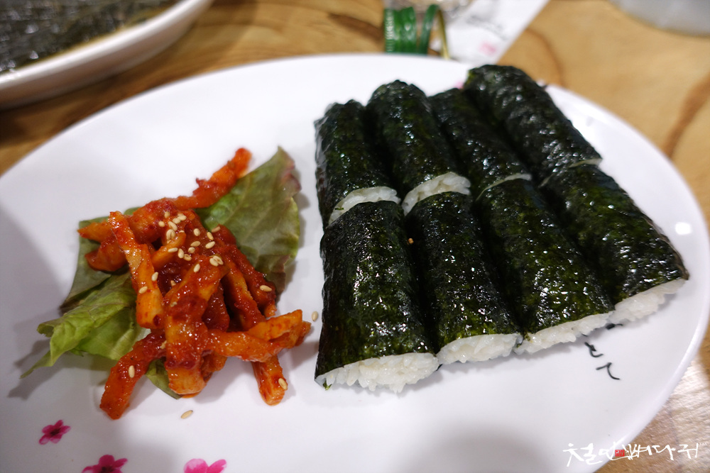 꼬마김밥은 사장님이 서비스로 주셨습니다.