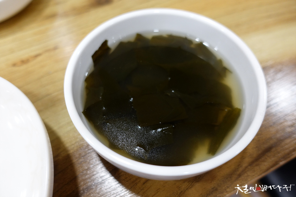메인 메뉴 먹기 전에 먹을 수 있게, 미역국도 나왔는데, 깔끔하고 개운했습니다.