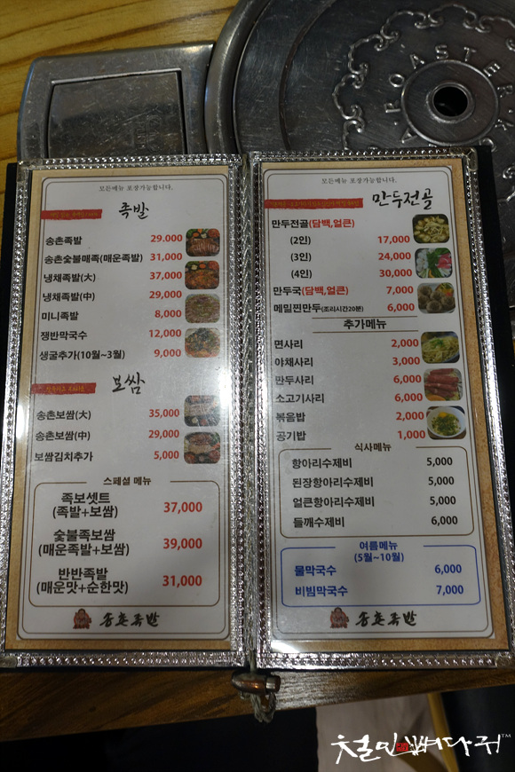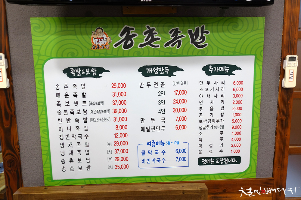 식당 건너편에 공영주차장이 있고, 송촌족발에서 주차 2시간 무료를 제공해줍니다.