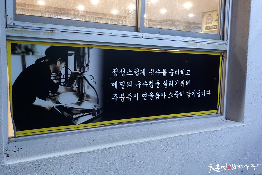 건물 밖 창에 붙어있는 것인데, 면을 사용하는 메뉴는 바로 뽑는가 봅니다.