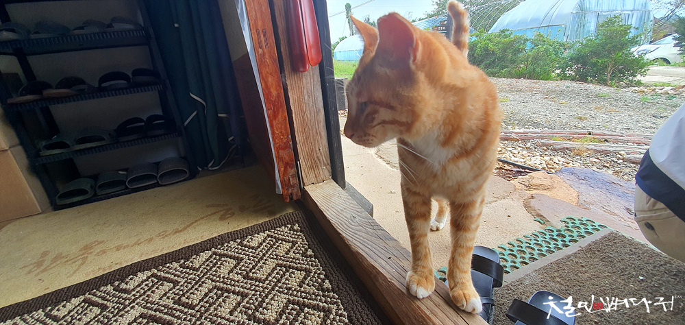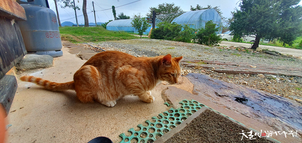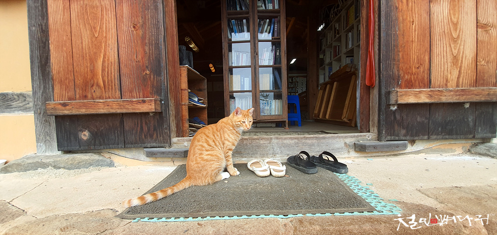 고양이 한 마리가 있었는데, 작은도서관 내부와 외부를 자유롭게 다녔습니다.