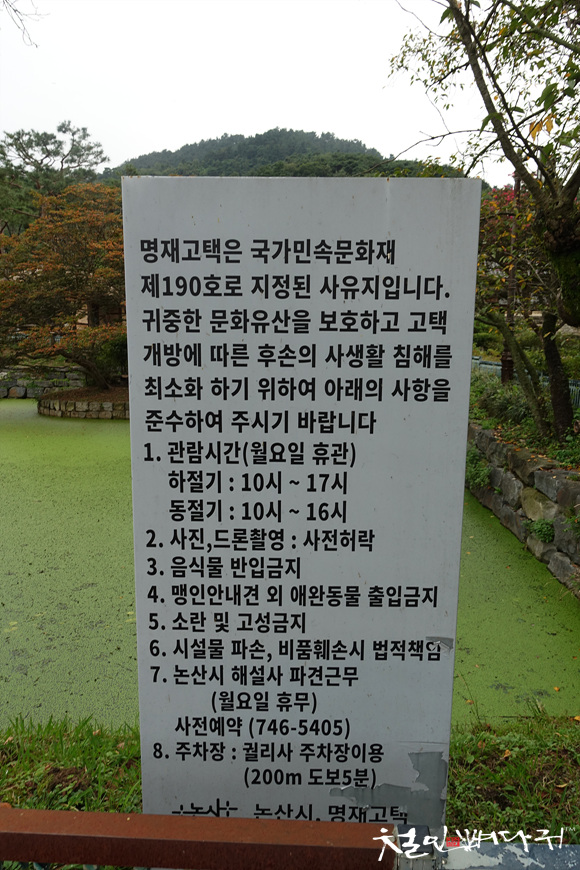 주차를 하는 곳쯤에 누구나 쉽게 볼 수 있는 명재고택 방문에 대한 안내가 있습니다.