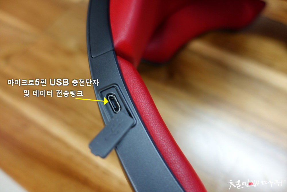 헤드기어 아래쪽으로 충전단자가 있습니다.