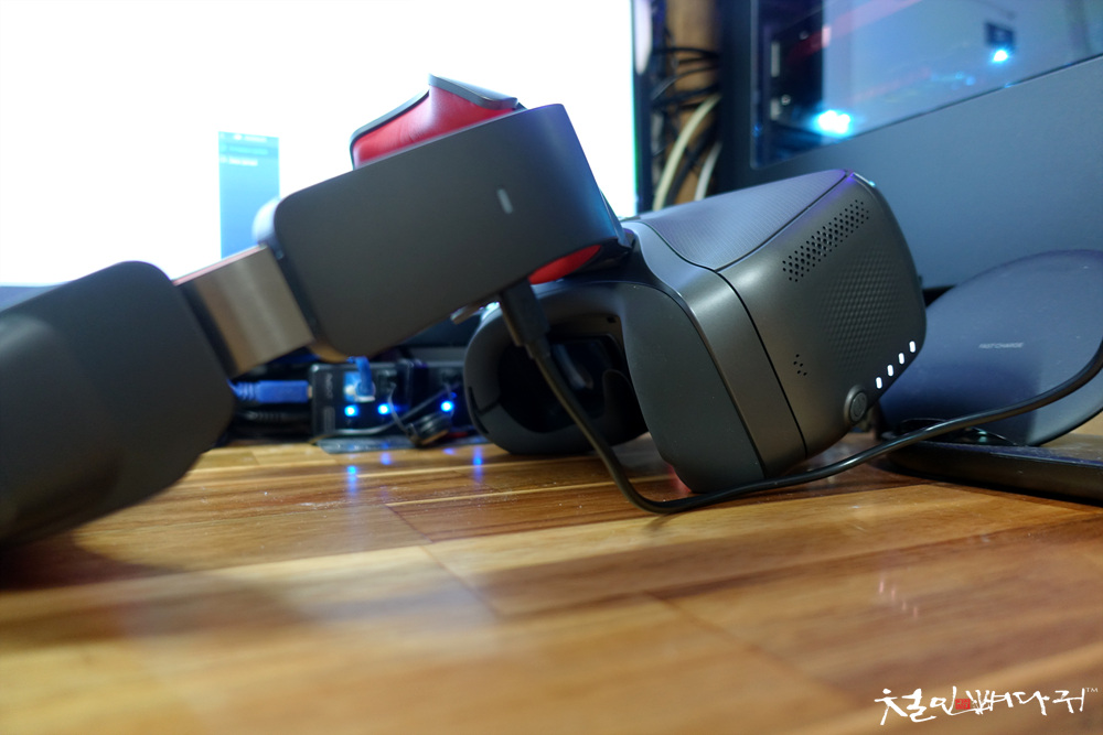 고글 자체에 스피커가 내장이 되어 있어, 다양한 효과음이나 외부기기를 연결해서 영상을 시청할 때에도 사용 가능합니다.
