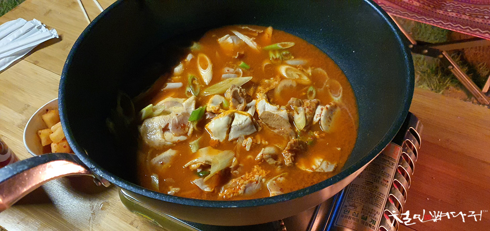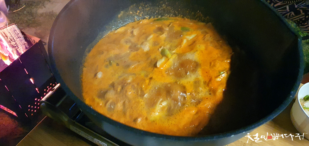 캠핑장에서 곱창전골 끓여서 먹는 것도 괜찮았습니다.