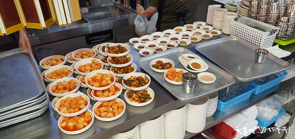 식당은 나갈 음식들이 대기상태로 있는데, 항상 뭔가 많습니다.