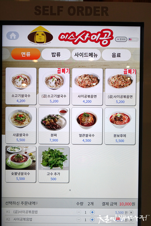 주문은 발권기의 터치스크린 터치해서 직접 주문하면 됩니다.