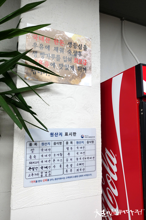 국내산 한돈 생등심을 우유에 재워 숙성하고 최고급 식용유로 만든다는 글이 벽면 한쪽에 붙어 있었는데,