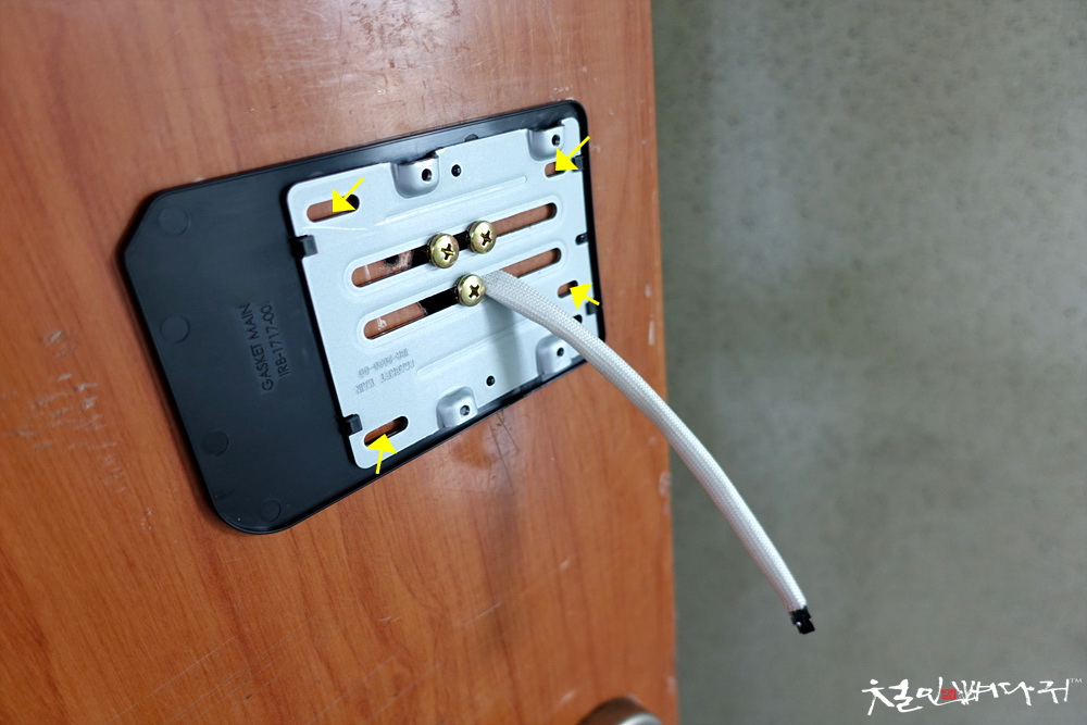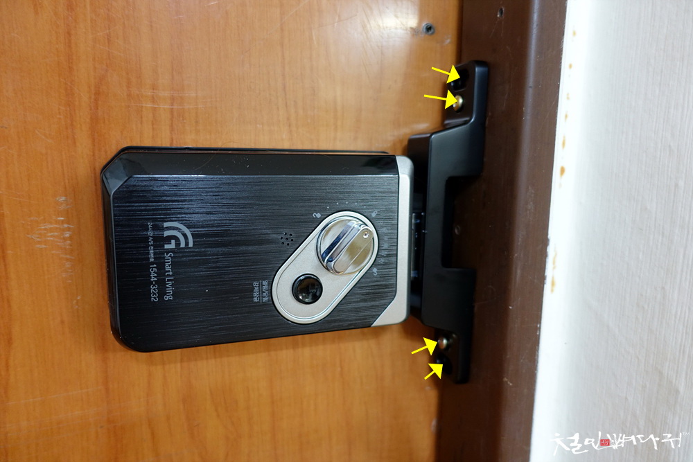 노란색 화살표처럼 최소 4개의 나사를 사용해서 고정해주어야, 외부에서 문을 당겼을 때,