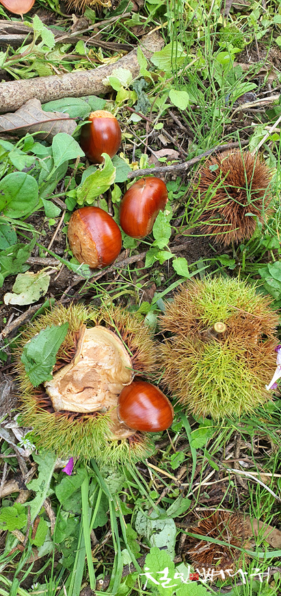 떨어진 수많은 밤송이들 중에 회수하지 못한 밤들도 상당수 있습니다.