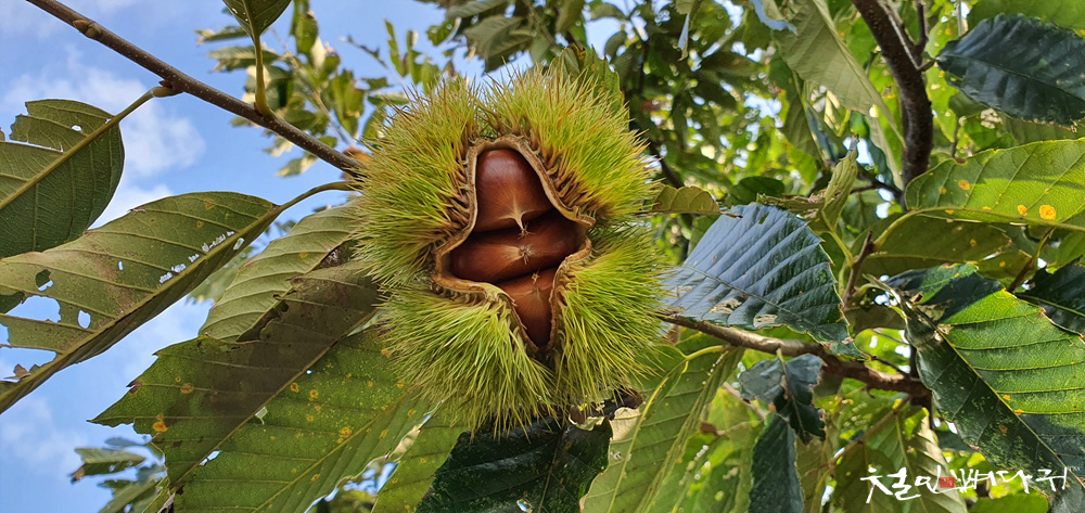 나무에 달린 잘 익은 밤들도 많이 보였습니다.