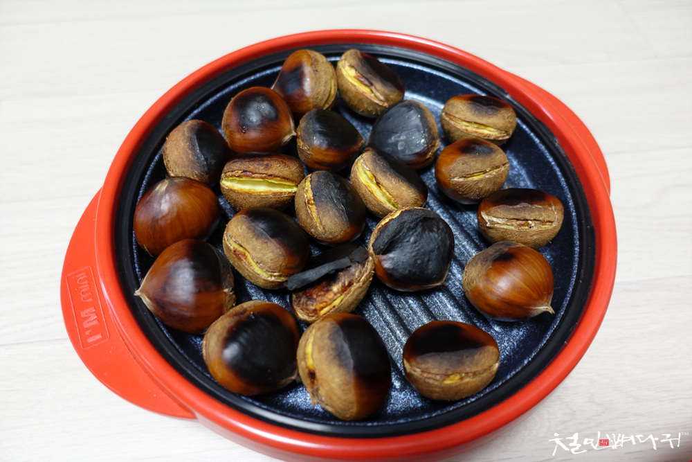 이후에 군밤을 까서 먹었는데, 잘 안 까지네요.