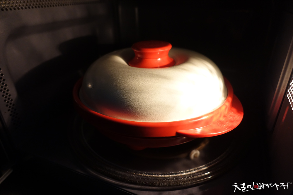 전자레인지에 넣고 뚜껑을 덮어주었고,