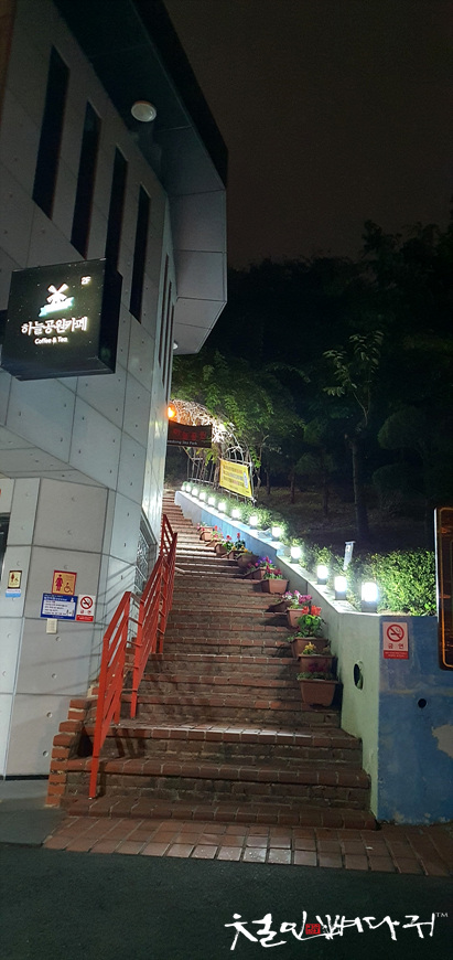하늘공원 올라가는 계단 옆으로 하늘공원 카페도 생겼네요.