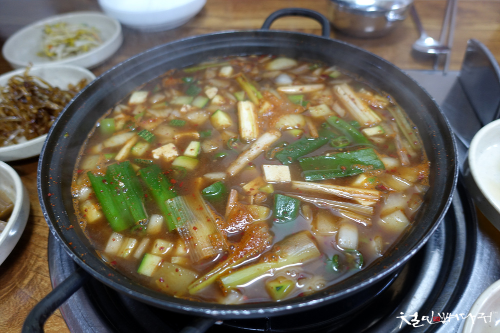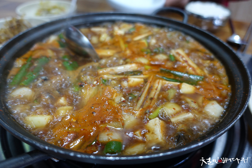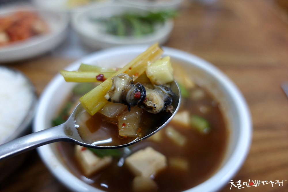 지난번에는 김치찌개를 먹었으니, 오늘은 우렁된장찌개를 주문했습니다.