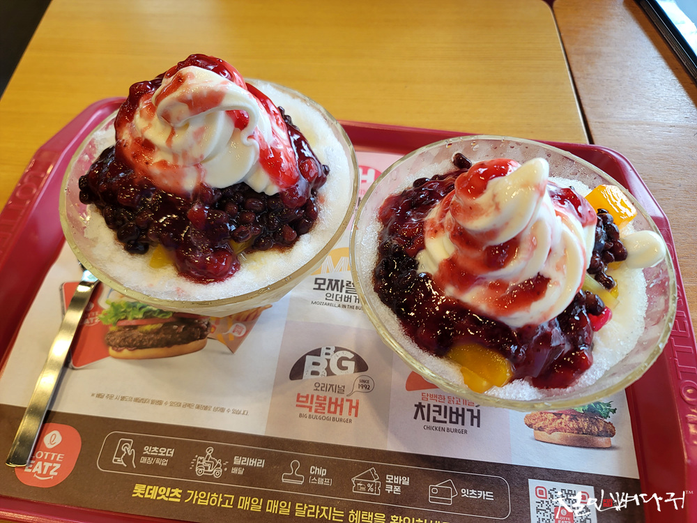 사촌형과 식사하고 후식으로 롯데리아 팥빙수.