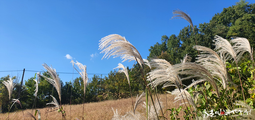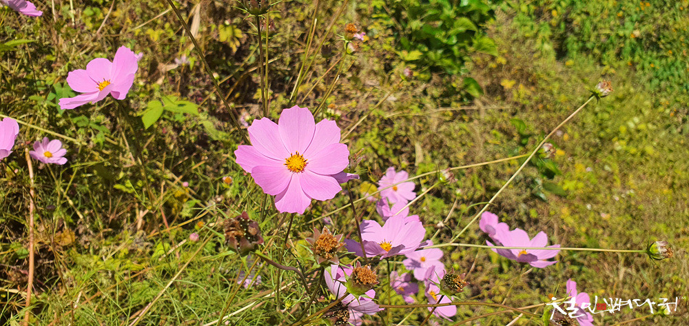가을의 전령들인 갈대와 코스모스 꽃도 길가에 보이고,
