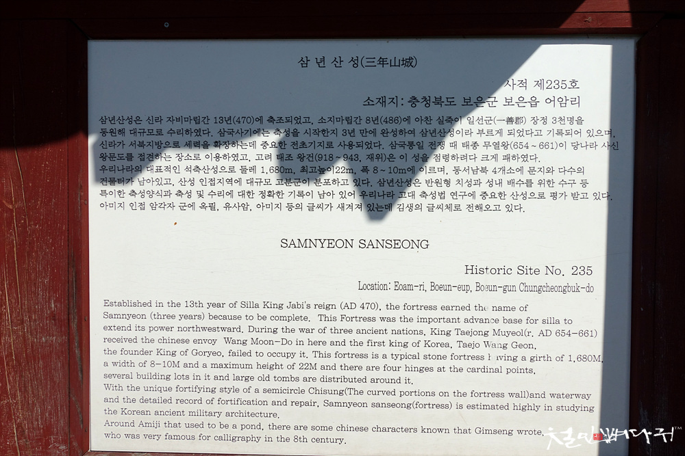 삼년산성이라고 부른다고 삼국사기에 적혀있다는 내용입니다.