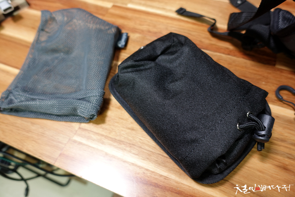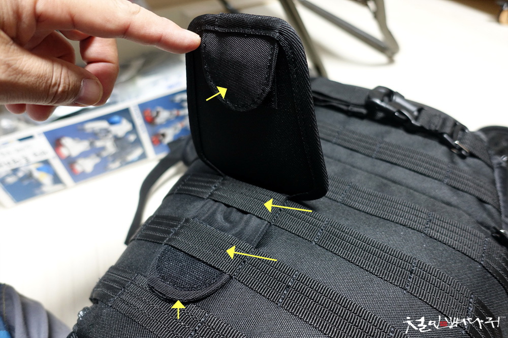 주머니들은 뒷면이 가방의 몰리시스템에 거치할 수 있도록 되어있습니다.