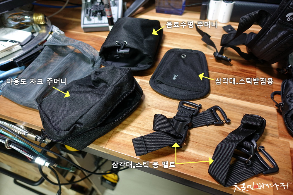 -삼각대. 스틱 등을 받쳐줄 수 있는 주머니.