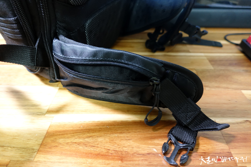 백팩 양쪽 아래 옆면으로 자크가 있는데, 내부의 공간에서 직접 물건을 꺼낼 때,