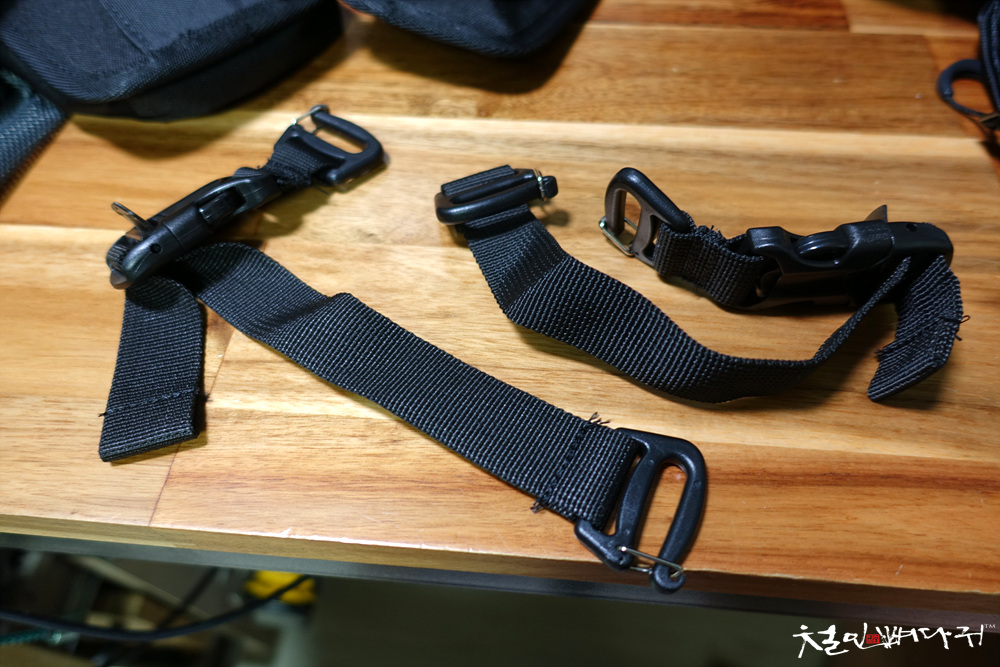 같이 포함되어 있던 비너가 적용된 밸트들은 상단 쪽의 몰리시스템에 고정해줍니다.