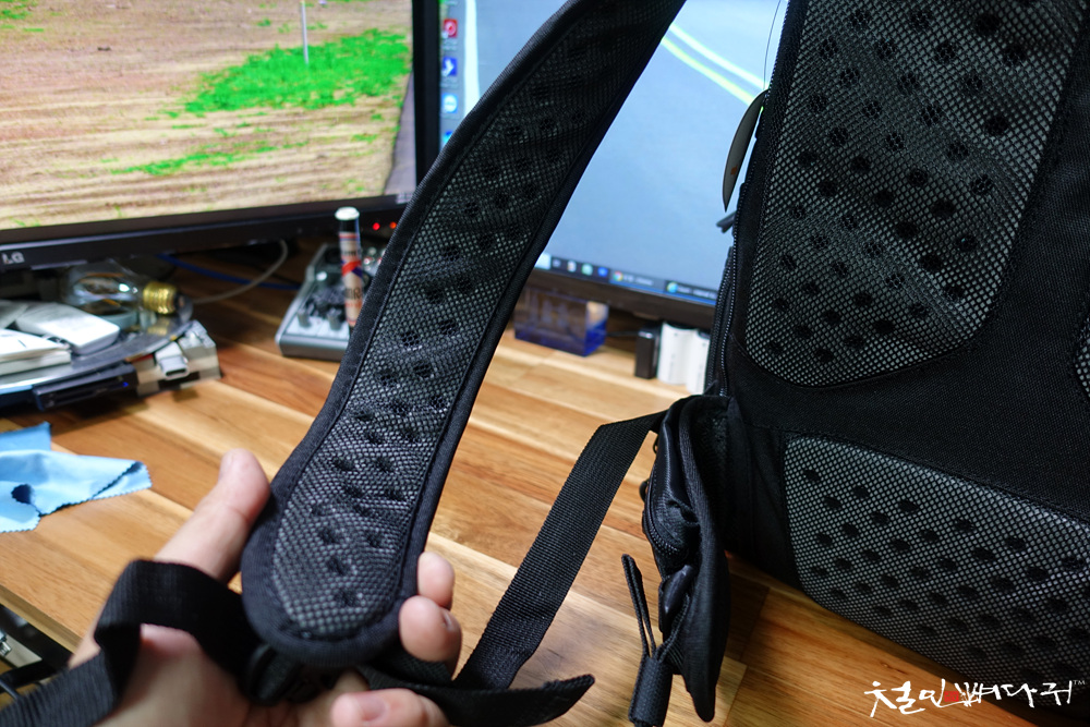 등판과 어깨끈의 안쪽에는 입체적인 쿠션과 숨구멍들이 있어서 기능성으로도 잘 만들어진 것을 알 수 있습니다.