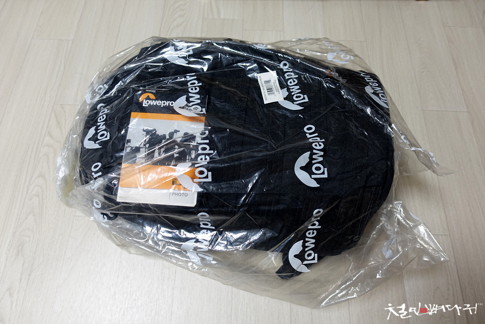 안쪽에 비닐 하나 더 있었는데, Lowepro(로우프로) 글씨가 도배되어 있었습니다.