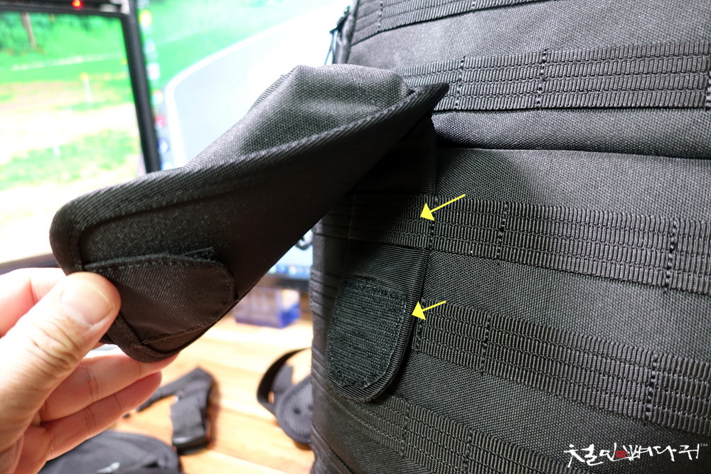 주머니들의 몰리시스템 거치 방식에 벨크로 기능까지 더해져서 아주 튼튼하게 고정이 됩니다.
