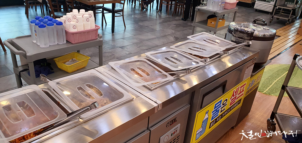 물은 중간중간 준비되어 있는 곳에서 직접 가져다 먹으면 되고,