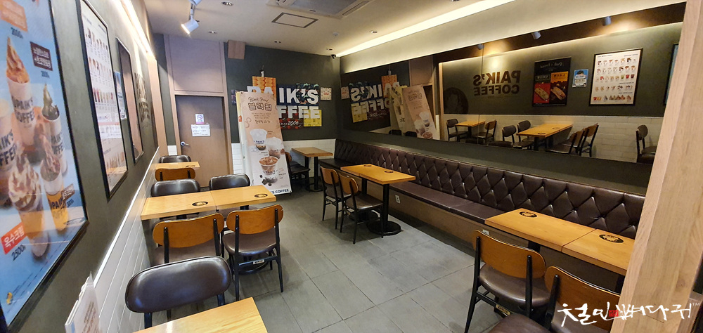 길에서 창문 너머로 바로 주문할 수 있는 곳에서 보이는 빽다방 내부입니다.
