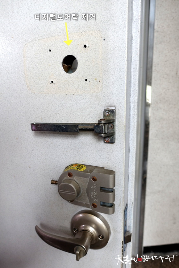 이사를 가셨는데, 기존에 설치되어 있던 현관문손잡이(현관정)와 디지털 도어록을 제거하고,