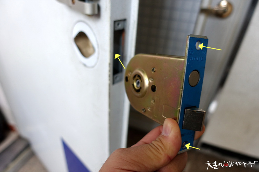 기존의 현관손잡이 분해한 사진은 안 찍었고,