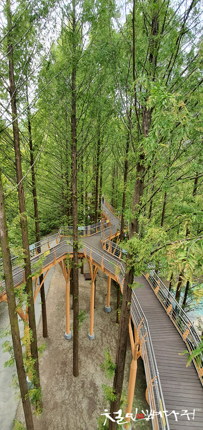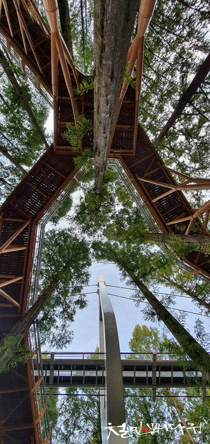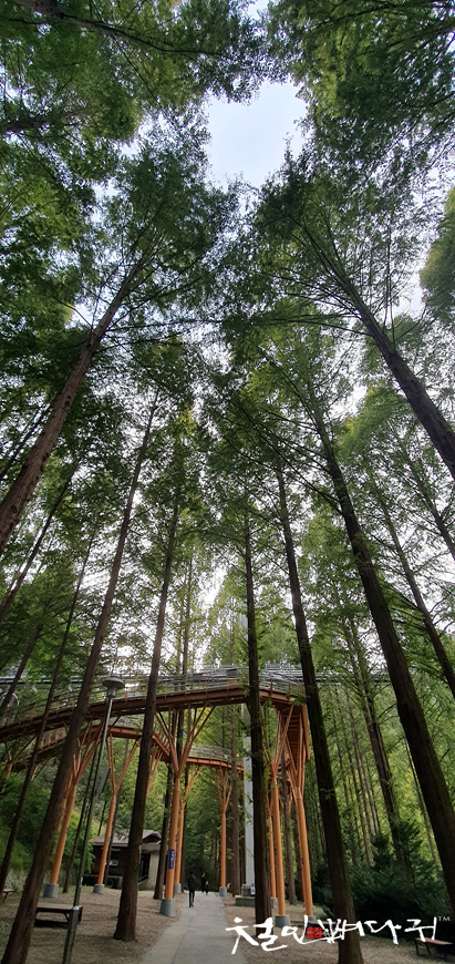 높은 메타세콰이어 나무들 사이에 스카이웨이라는 길을 만들어 놓아서