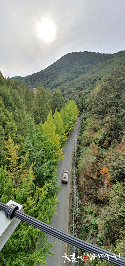 스카이웨이 위로 출렁다리도 보입니다.