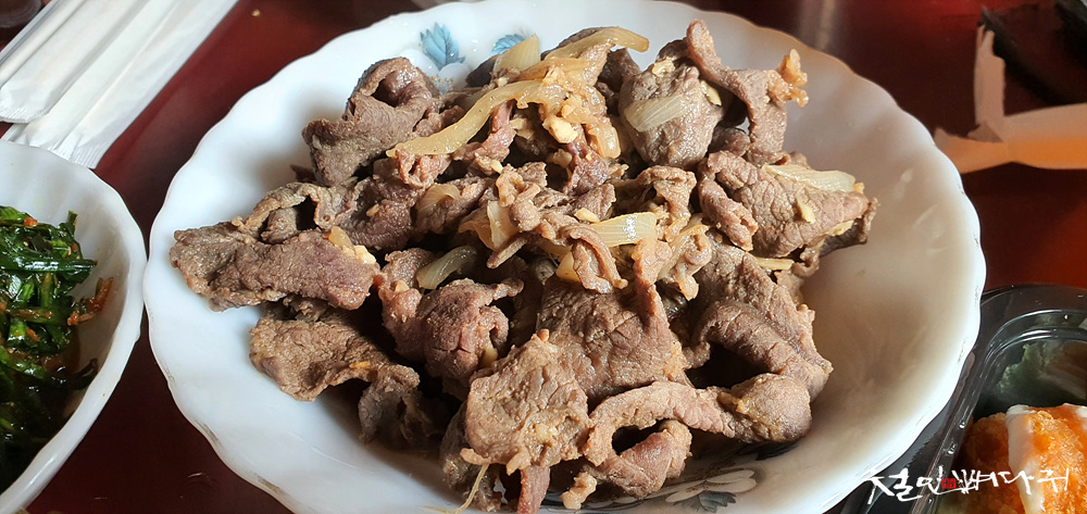 반찬들의 영양(?)이 부족하다고, 고기반찬은 즉석에서 만들어 주셨네요.