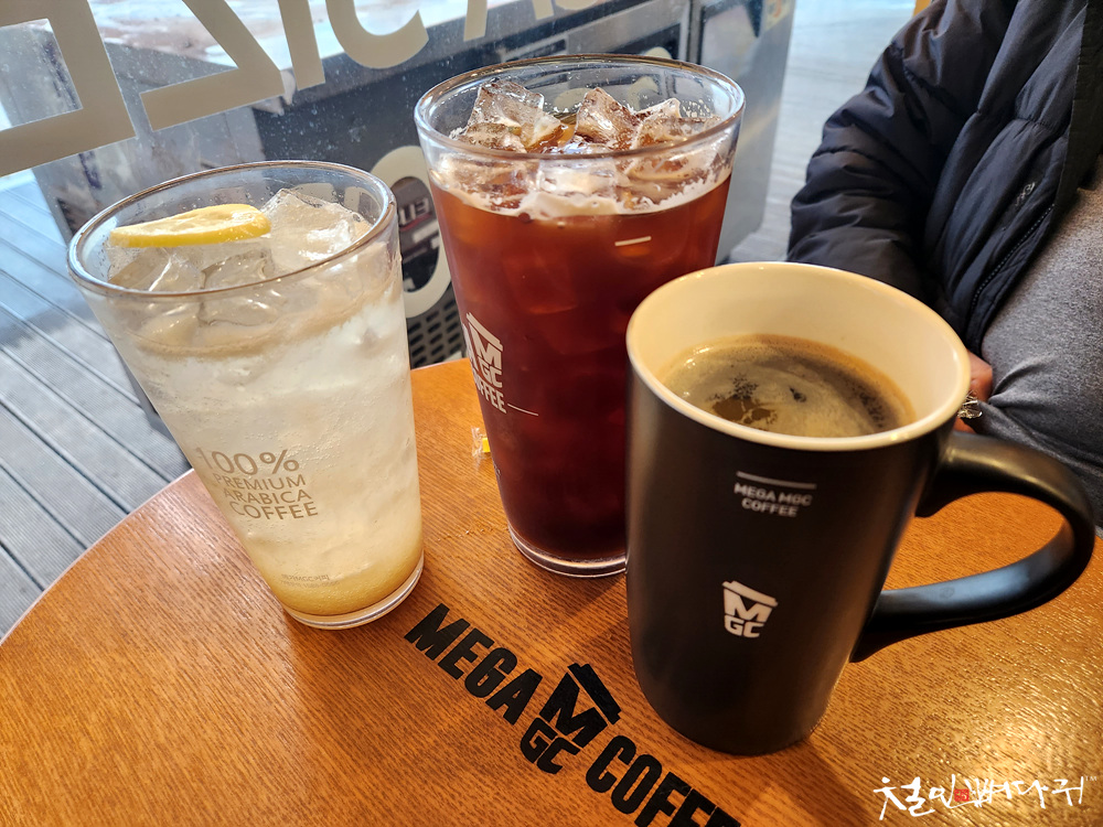 점심을 거하게 잘 먹고 나와서, 바로 아래층의 메가커피에서 음료를 주문했습니다.