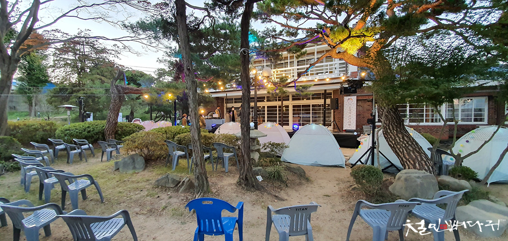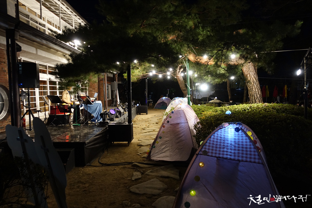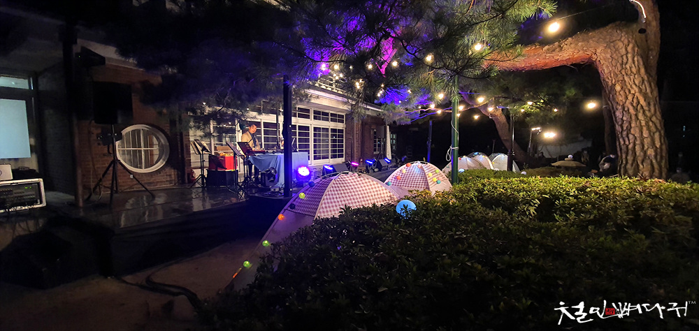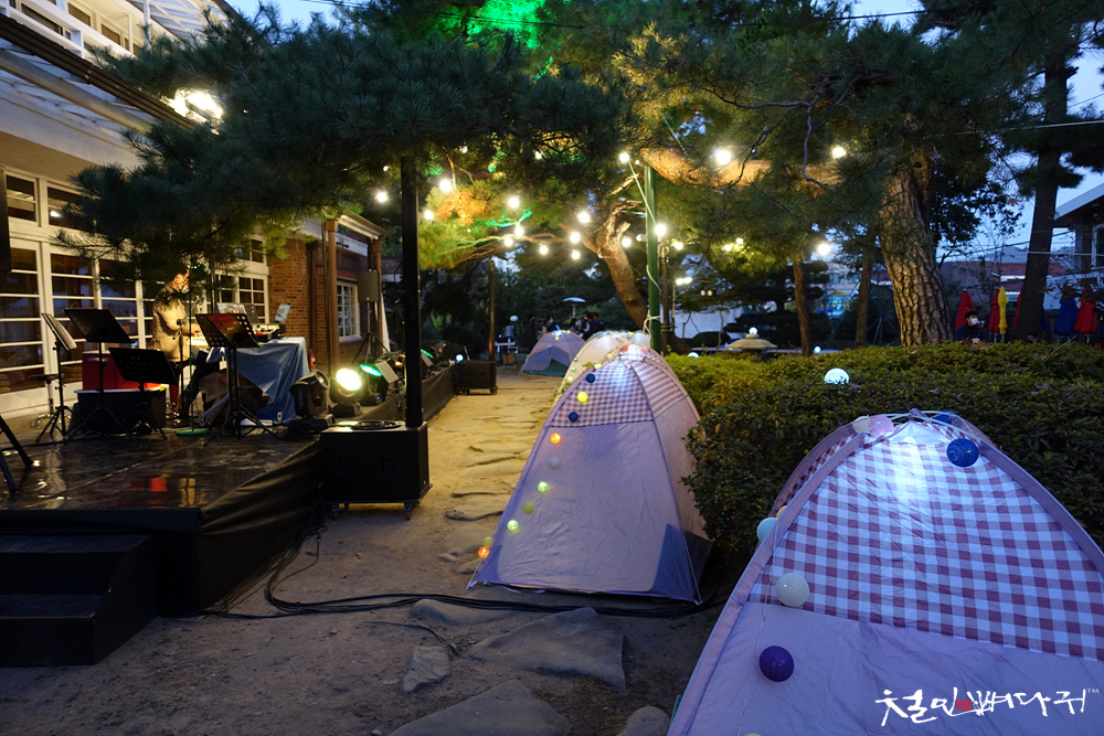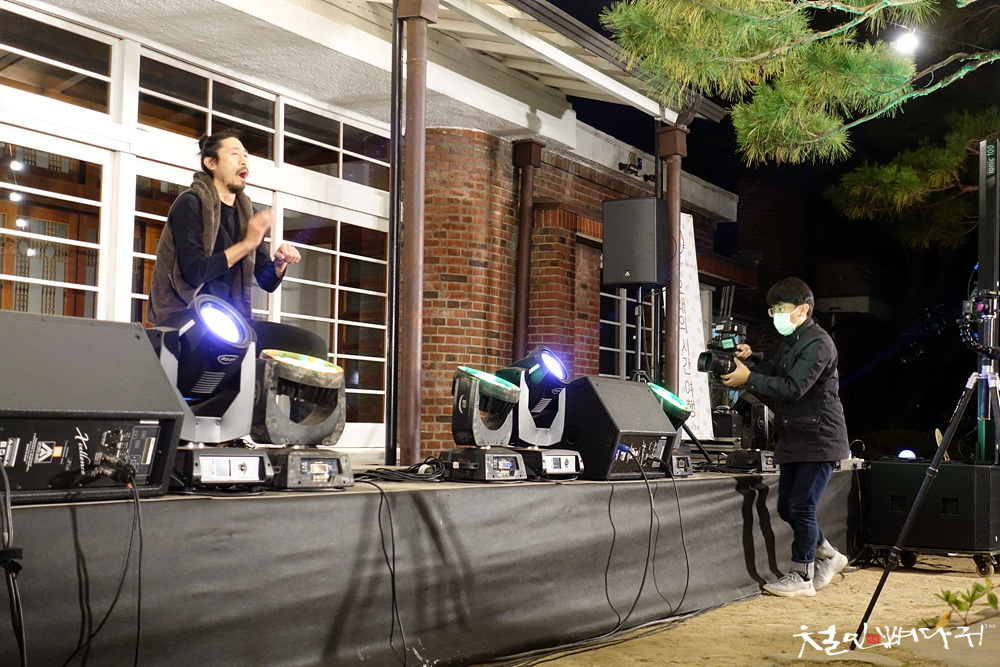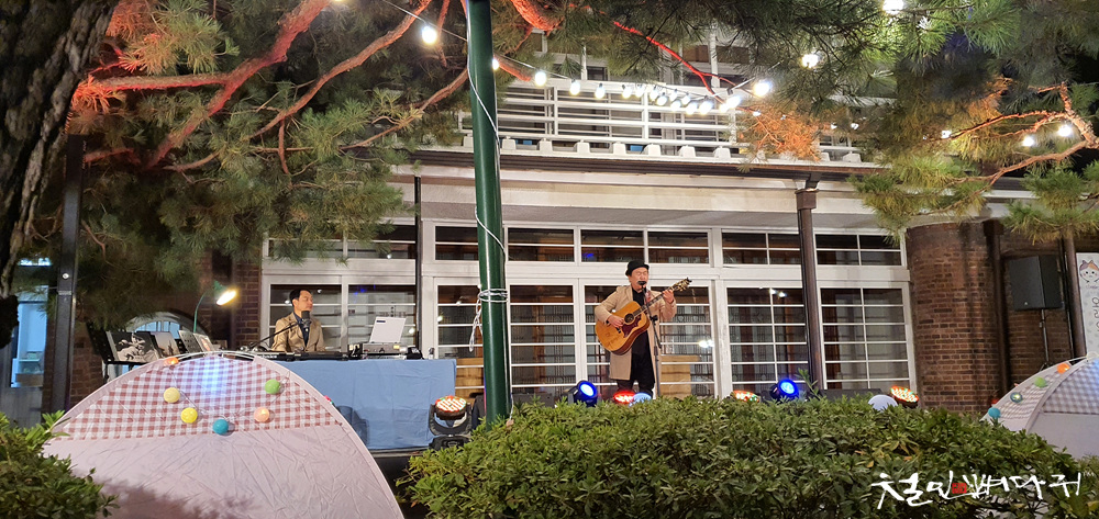 옛 충남도지사공관 뒷마당에서 공연을 합니다.