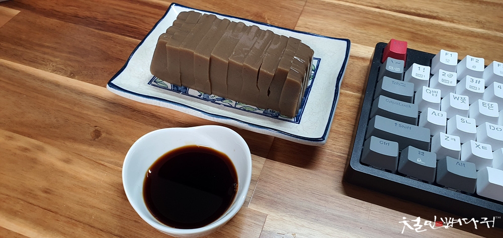 어제 친구 어머니가 만든 100% 국내산 도토리로 만든 수제 토토리묵을 한모 받아왔고,
