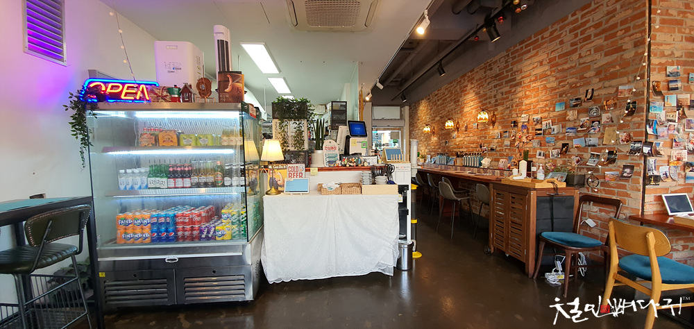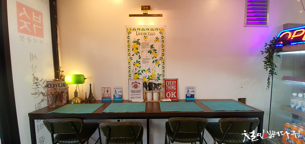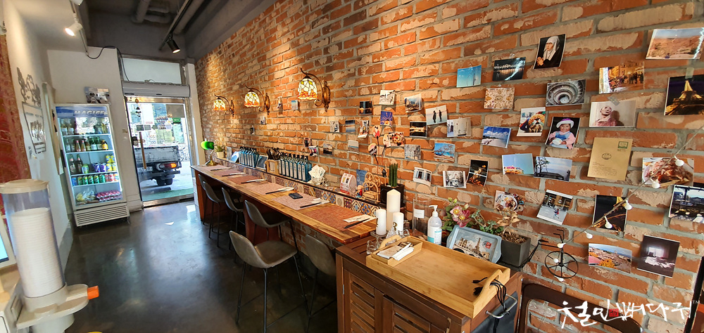 식당 내부에 식사할 수 있는 공간은 테이블도 있지만, 벽면으로 나란히 앉을 수 있는 곳도 있는데,
