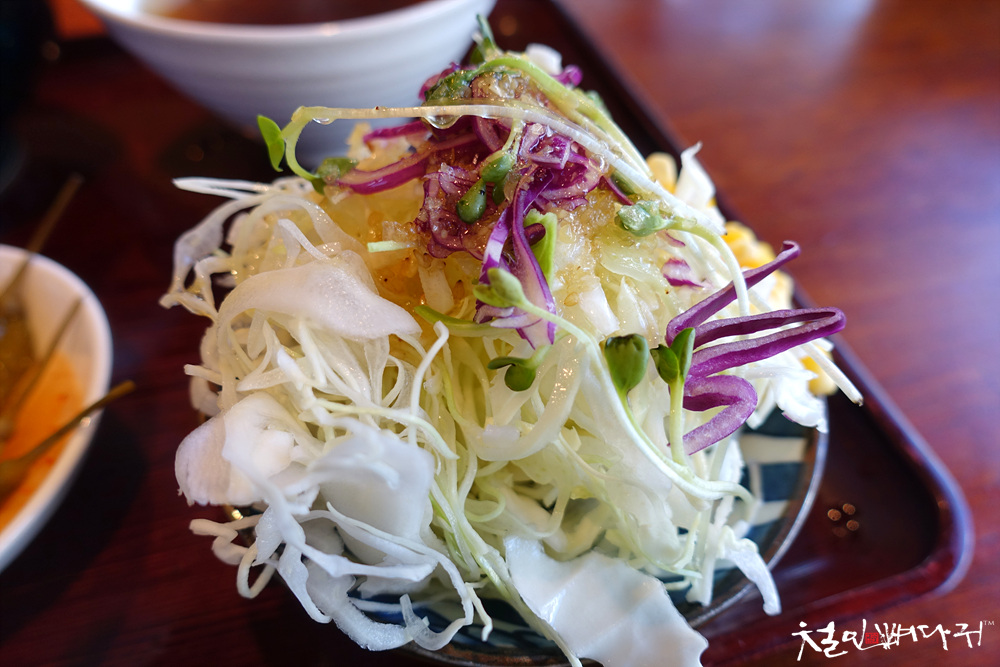 새콤, 달콤한 샐러드도 같이 나와서 튀김의 느끼함을 잡아줍니다.