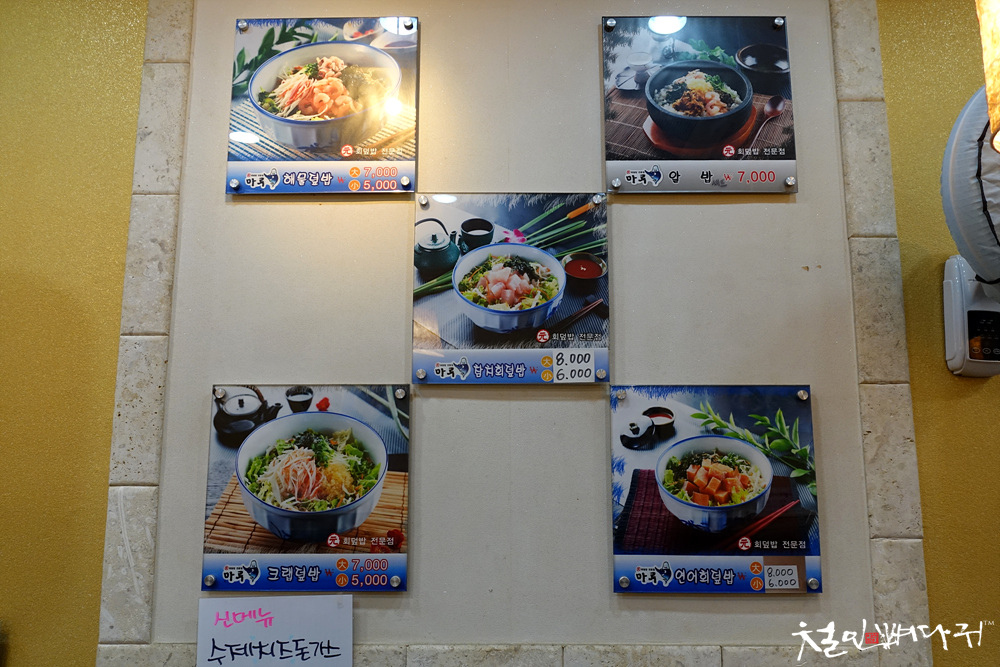 벽면에 회덮밥 사진들도 있습니다.