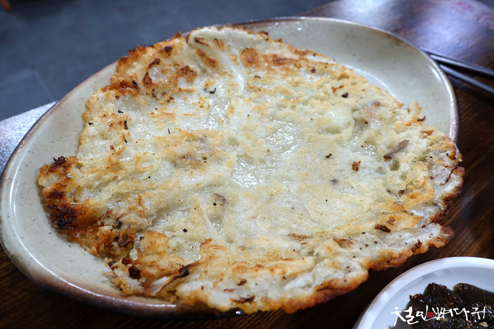 찹쌀로 만들었는지 쫀득쫀득한 부침개였습니다. 고소하게 잘 먹었습니다.