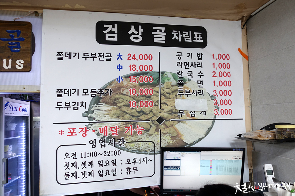 대표메뉴가 쫄데기 두부전골입니다.
