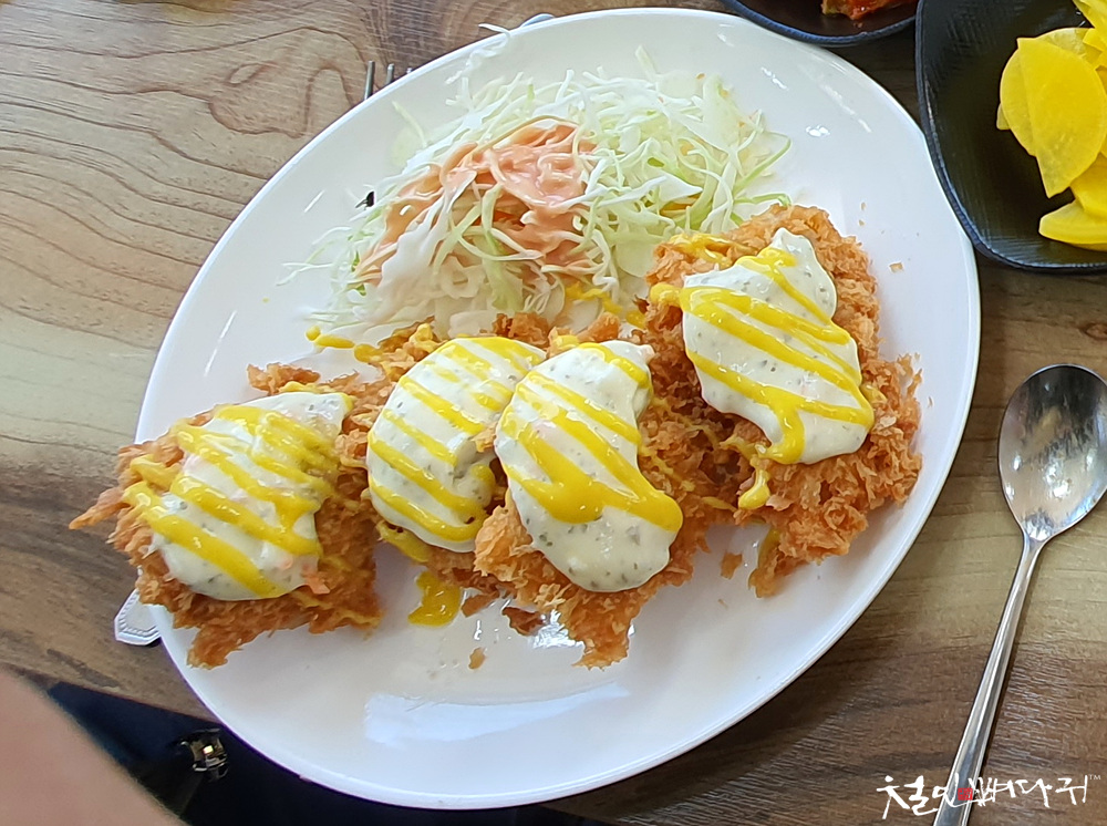 생선까스가 제일 늦게 나오고, 같이 나눠 먹었습니다.