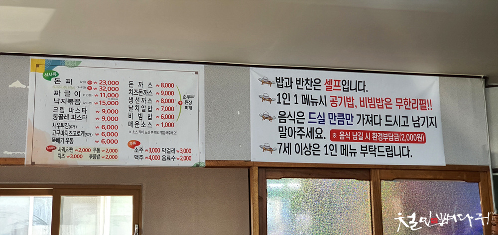 메뉴 중에 파스타 종류나 새우튀김, 우동 같은 것들도 보입니다.