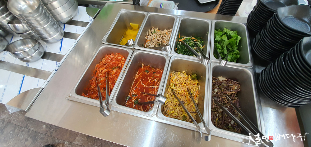 한쪽에 반찬과 비빔밥 재료들도 준비되어 있습니다.