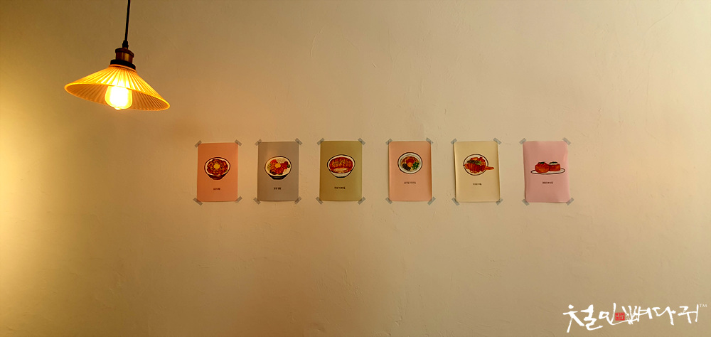 이곳에서 판매하는 음식들이 그림으로 벽에 붙어있습니다.
