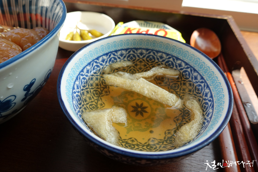 유부가 들어간 국물로 목 막힘을 달래주고, 잘 먹었습니다.