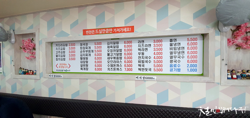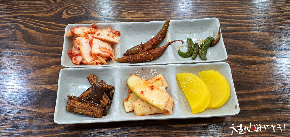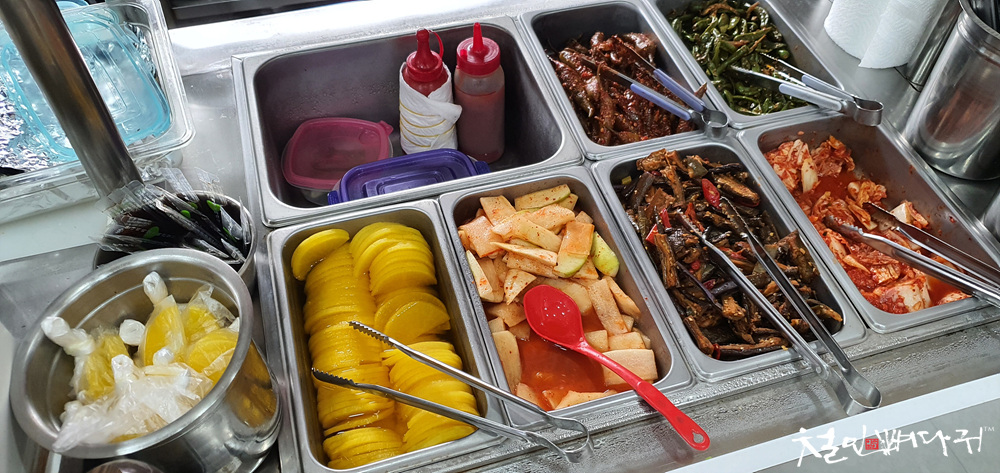 여기 분식집 반찬은 6가지였습니다.